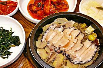 アワビのお粥、アワビの刺身、アワビ焼き、アワビの石焼ご飯