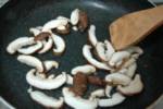 ◇干ししいたけをぬるま湯に浸し、やわらかく戻ったら、形よく切り、油を引いたフライパンで炒め、醤油、砂糖を加え味を調える。