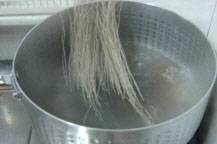◇大きな鍋に沸騰したお湯を準備し韓国春雨を入れ、時々軽くかき混ぜながら6,7分ほど春雨が透明になるまで茹でていく。