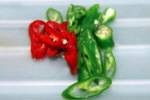 ◇赤唐辛子、青唐辛子は薄切りにする
