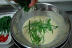 ◇チヂミのタネにニラを入れ軽くあわせる