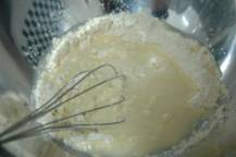 ◇大き目のボウルに小麦粉と卵をいれ、多めの水を加えよく混ぜタネを作る。