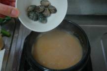 ◇沸騰したらアサリを加え火加減を調節しながら煮込んでいく