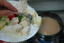 ◇野菜が煮えたら豆腐を加え、最後に粉唐辛子、おろしニンニクを加え更に塩で味を調え仕上げます。