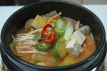 日本人にも馴染み深い味噌を使った鍋料理。韓国の食堂では一般的にトゥッペギと呼ばれる一人前用の小さな素焼きの鍋で調理され、そのまま鍋ごと出てきます。韓国の一般家庭料理として家庭でも食堂でも人気の高い定番の料理です。日本の味噌汁は、味噌をいれて沸騰直前に火を止めるなど味噌の風味を大切にしますが、韓国では味噌を入れ、更にグツグツと煮込んで調理します。脇役的な日本の味噌汁と違い、テンジャンチゲは具沢山でコッテリとした味なので、テンジャンチゲだけでもご飯一杯軽く食べることができます。家庭でも簡単に作ることができますのでぜひ一度チャレンジしてみてください。