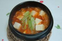 説明 やわらかな豆腐(純豆腐)をアサリなど魚介類で取ったスープで煮込む辛目のスープ料理