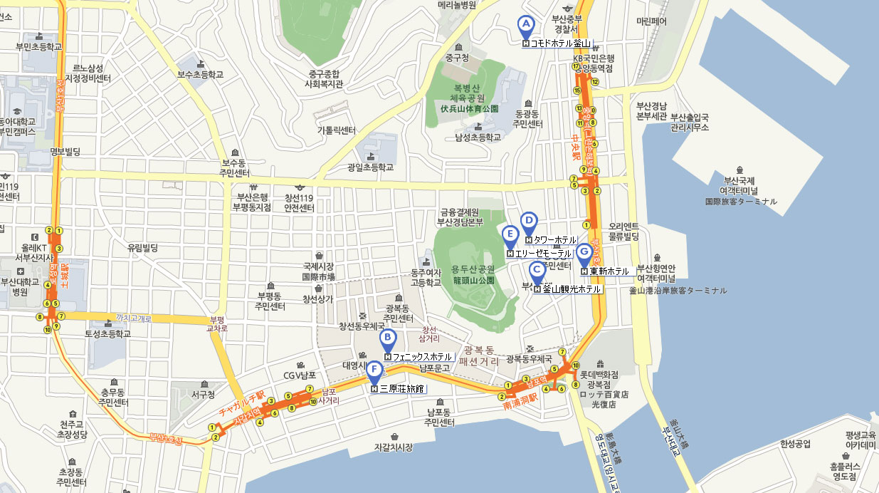 三原荘(サムウォンジャン)旅館 フェニックスホテル 釜山観光ホテル エリーゼモーテル タワーホテル コモドホテル釜山 東新ホテル