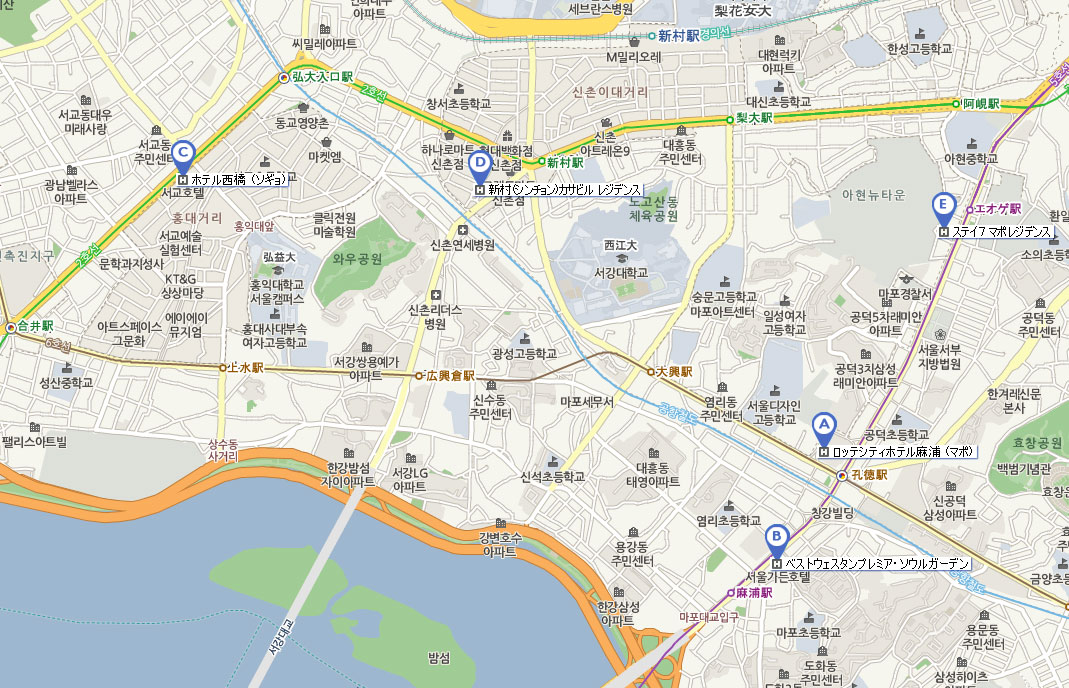 ロッテシティホテル麻浦 (マポ) ベストウェスタンプレミア・ソウルガーデン   ホテル西橋 (ソギョ) 新村(シンチョン)カサビル レジデンス ステイ7 マポレジデンス