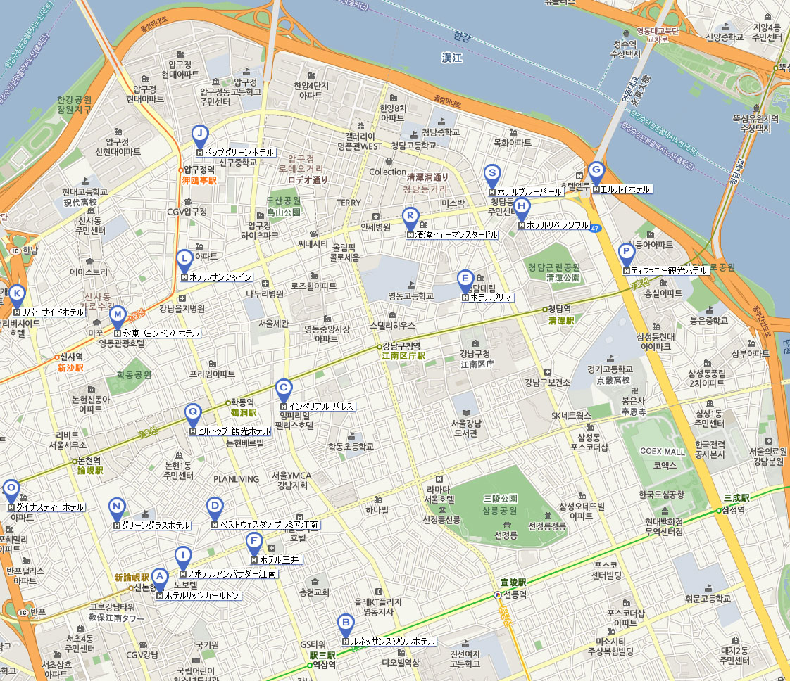 ホテルリッツカールトン ルネッサンスソウルホテル インペリアル パレス ベストウェスタン プレミア江南 ホテルプリマ ホテル三井(サムジョン) エルルイホテル ホテルリベラソウル ノボテルアンバサダー江南 ポップグリーンホテル リバーサイドホテル ホテルサンシャイン 永東 (ヨンドン) ホテル グリーングラスホテル ダイナスティーホテル ティファニー観光ホテル ヒルトップ 観光ホテル 清潭(チョンダム) ヒューマンスタービル ホテルブルーパール