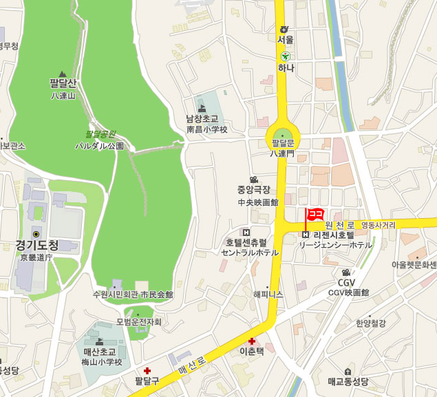 水原 (スウォン)行きバス(京畿空港リムジン)に乗って、水原ホテルキャッスルで下車後、