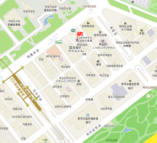 ♣ 仁川空港 ⇒ ホテル アクセス • 高級リムジンバス : バス乗場:《第1T》6B 《第2T》32 運行間隔20~25分 所要時間 約50分 6030番 梨秦院行きバスに乗車し、ケンジントンホテル汝矣島前下車。徒歩約6分。 • タクシー : 一般45,000ウォン、模範70,000ウォン程度 所要時間 : 約60分 ♣ 金浦空港 ⇒ ホテル アクセス • 地下鉄 : 金浦空港 (Gimpo Int’l Airport)から地下鉄9号線に乗り、国会議事堂(National Assembly)駅下車。1番出口より徒歩7分。 • タクシー : 一般20,000ウォン程、模範35,000ウォン程、所要時間 : 約50分 ♣ その他 情報 • チェックイン 15:00、 チェックアウト 12:00 • 朝食無料サービス • 徒歩 2分以内にコンビニあります。 • NHKなど衛星放送 受信可。 • 現地の事情により予告なしに変更される場合もございます。あらかじめご了承ください。 • 予約の確認、変更依頼、取消はMy予約確認ページにて行えます。 • メール送受信状況の確認、お客様とハナビツアーとのメッセージのやりとりはMy予約確認ページ ⇒ メール送受信 にて行えます。 • 最終更新日 : 2017. 2. 26