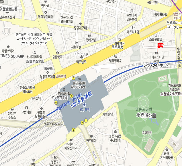 住所 ソウル市 永登浦区(ヨンドゥンポク)永登浦洞(ヨンドゥンポドン)121-1