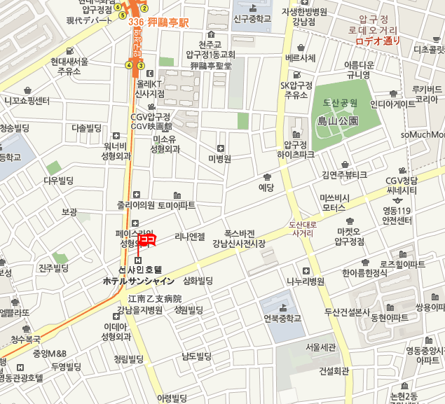 韓国ソウル狎鴎亭 ・清潭エリアのホテル予約手配【ホテルサンシャイン(Sunshine)】