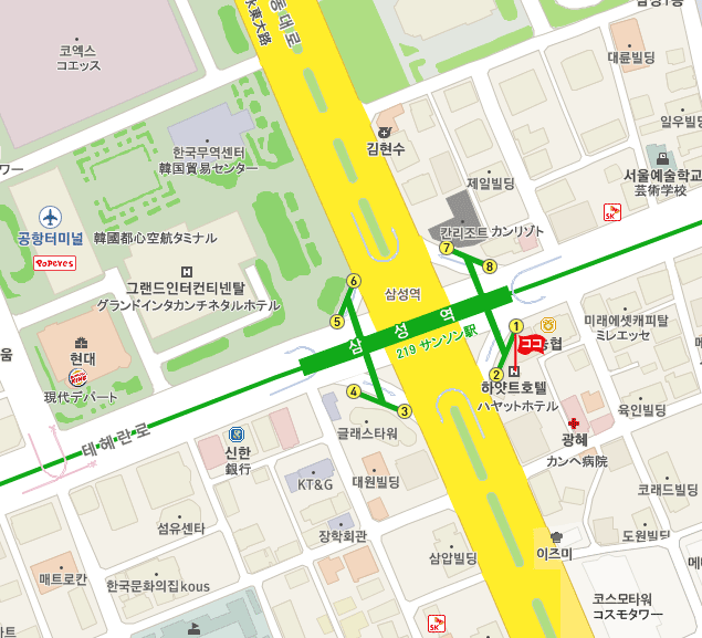 ◇ 京畿道、忠清道方面 高速バス路線