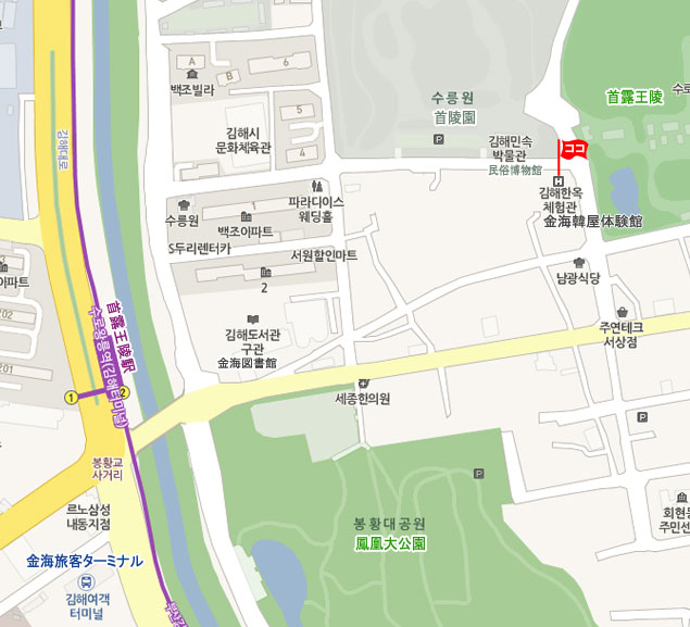 •  市外バス  金海市外バスターミナルより徒歩約15分