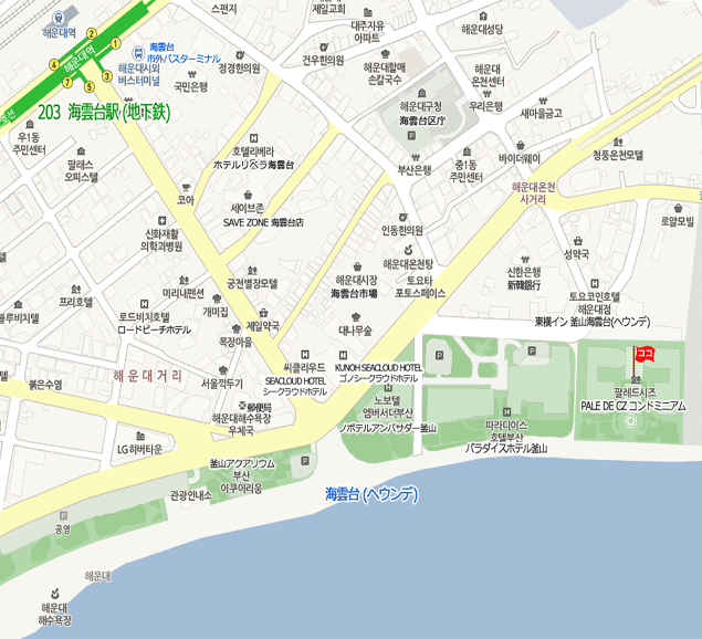 PALE DE CZ(パレドシズ)コンドミニアムは、カジノで有名な釜山パラダイスホテルのお隣に位置する高級コンドミニアムで海雲台ビーチが目の前の絶好なロケーションにあります。地下3階地上17階建のガラス張りの建物には客室の他にファーストフードやレストラン、コンビニエンスストア、カフェといった商業施設が多数並んでいますので食事やちょっとした買い物にも不便がありません。お隣は、カジノや免税店も併設したパラダイスホテルですので、ナイトライフやショッピングにも困りません。また建物内にはフィットネスジムや室内プール、ゴルフ練習場、会議室などの付帯施設も充実し、フィットネスやプールは利用客には一室2名様まで無料で開放されています。