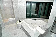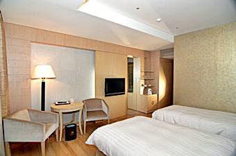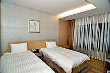 客室タイプは、ダブル、ツイン、オンドル、スイートの4タイプ。市内中心部のホテルに比べちょっと余裕の広さです。特にスイートルームのバスルームは大変広く、漢江の眺めをご覧になりながら、ゆっくりとご利用になれます。地下のフロアーには、男性用サウナと宴会場とセミナー室をご用意しました。また、1階フロントの横にはビジネスセンターも設置されています。また、同じフロアーのコーヒーショップでは朝食ビュッフェをご用意、それ以降は韓国料理や洋食の食事やお飲み物を召し上がることが出来ます。