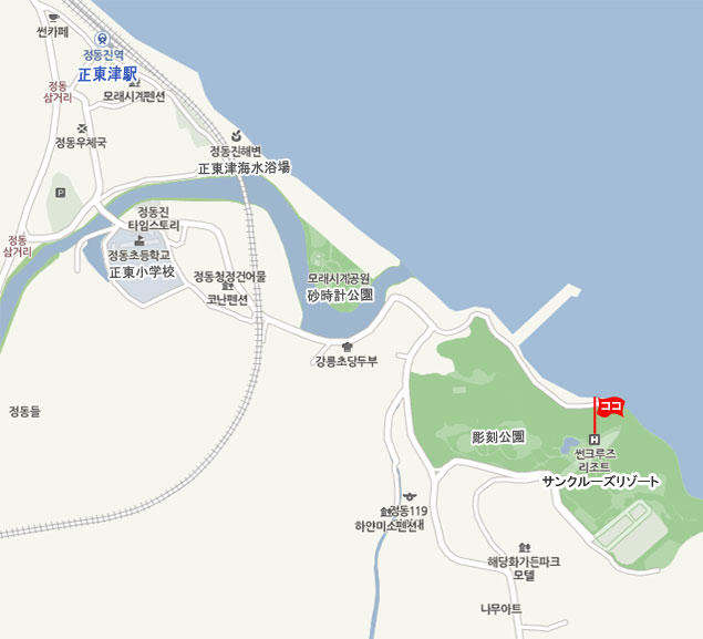 ターミナル前バス停留所より109番バスに乗車。サンクルーズリゾート前下車。