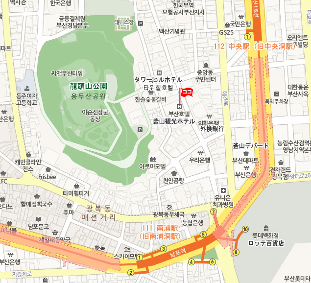 住所 釜山広域市 中区(ジュング)東光洞2街(ドングァンドンイガ)12番地