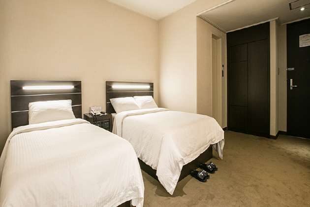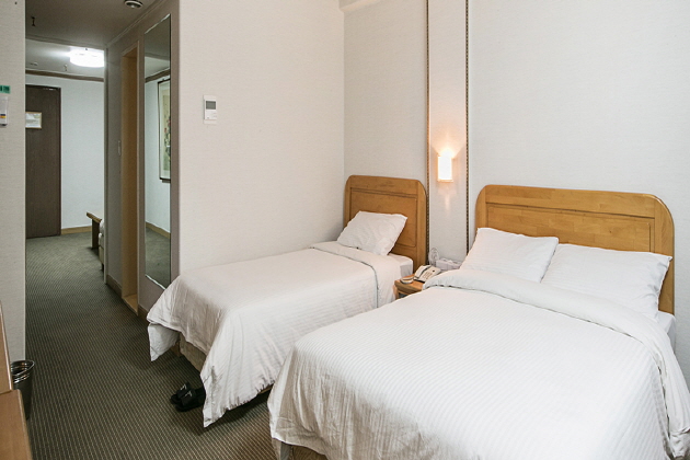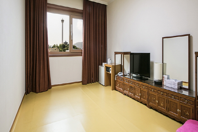 ホテルの1階にはフロント以外にビジネスセンター、旅行会社、コーヒーショップが、2階には宴会場とレストランがあります。このレストランでは、朝食ビュッフェが楽しめます。3階には男性サウナがあり、3階以上が客室になっています。客室は、全部で6タイプ。ダブル、ツイン、オンドル、スイート、オンドルスイート、ロイヤルスイートで、スイートは14坪、ロイヤルスイートは25坪とゆとりのある設計になっています。日本語の話せるフロントスタッフも常駐していますので、言葉の面でも問題なく滞在していただけます。