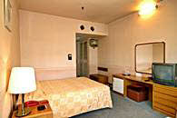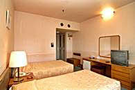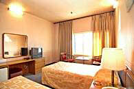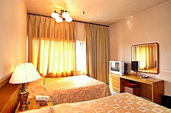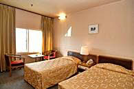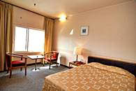 このホテルのフロントは2階に位置し、スーツケースを持っての移動が大変な場合は、頼めばホテルスタッフが手伝ってくれますし、裏に回ればエレベーターもあります。5階から14階が客室で15階がイベントホール、16階がスカイラウンジとなっていて、こちらで朝食となります。2階のフロントの前には自由に使えるコンピューターが置いてありますので、ネットの検索やメールチェックなどに利用できます。客室タイプは、スタンダードダブル、スタンダードツイン、スタンダードオンドル、ロイヤルスイートの4タイプで、どの部屋もシンプルで落ち着いた雰囲気となっています。
