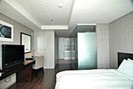 ホテル・シークラウドはミニキッチンなどがついた客室が自慢のレジデンススタイルの新感覚ホテル。今までにない客室設計と高級ホテルレベルのサービスが魅力的です。地上30階建てのホテルは、海雲台ビーチの景色を十分に楽しめるようになっています。客室は同じエリアのホテルに比べ、ちょっと広め。その上、ミニキッチン、冷蔵庫、洗濯機などレジデンスでおなじみの設備が整い、長期滞在にも対応できるようになっています。19階にはフィットネスセンター、4階には屋外プールとビュッフェレストランの「ディアス」があります。1階はショッピングアーケードと付帯設備も十分です。ホテル・シークラウドで海雲台を独り占めしましょう。