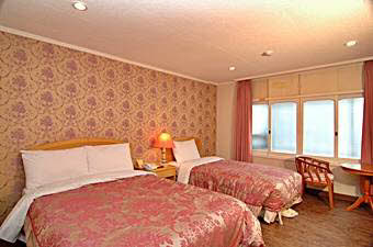 フロントは1階、2階にはエステ・ショップがあり、3階から6階までが客室で、最上階にレストランがあります。客室は全部で50余り。決して大きいホテルではありませんが、サービスを重視し好評を得ています。客室は、スタンダードダブル(7坪)、スタンダードツイン(7坪)、スタンダードオンドル(7坪)、スイート(10坪)の4タイプに分かれています。明るい色調の家具、カーテン、壁紙などで統一され、高級ホテル並みの快適さが自慢となっているホテルです。