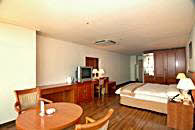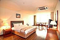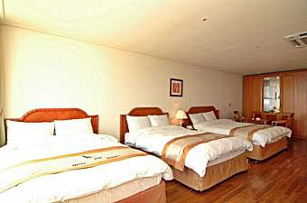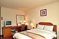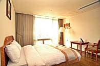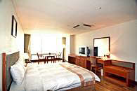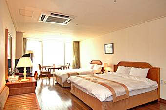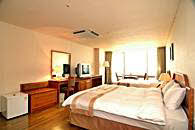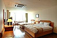 地下4階、地上20階の建物の中で、1階はフロントとビジネスセンター、ロビーラウンジ。客室は7階から16階までになっています。2階には中華料理、4階から6階まではサウナが入っています。客室タイプは5タイプ。スタンダードダブル、デラックスダブル、デラックスツイン、デラックスオンドル、トリプルで、スタンダードダブル以外は 12坪の部屋面積ですので、かなり広く感じられます。豪華さでは海雲台の高級リゾートホテルにはかなわないかもしれませんが、広さや清潔さでは負けません。また、客室の窓が大きいのもこのホテルの特徴。朝日や夕日がパノラマのように楽しめます。