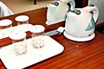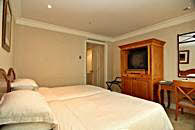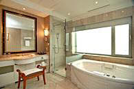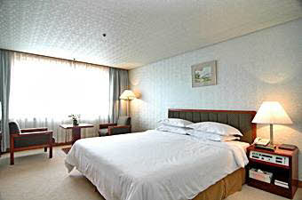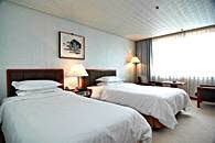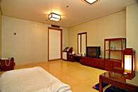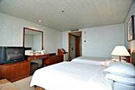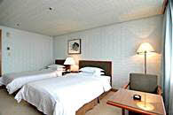 客室総数313の済州オリエンタルホテルは10階建ての建物、3階から10階までが客室になっております。2階には宴会場があり、地下にはボーリング場、サウナ、カジノもあります。フロントのある1階にはビジネスセンターもあり、PC、ファックスなど、ご利用になれます。客室タイプは、スタンダード(7.6坪)、スーペリア(8坪)、デラックスダブル(9坪)、ジュニアスイート(16坪)、ロイヤルスイート(27坪)5タイプ。どのお部屋も洗練させたデザインで落ち着いた雰囲気があり、また常に清潔さを保つように努力がなされているホテルです。