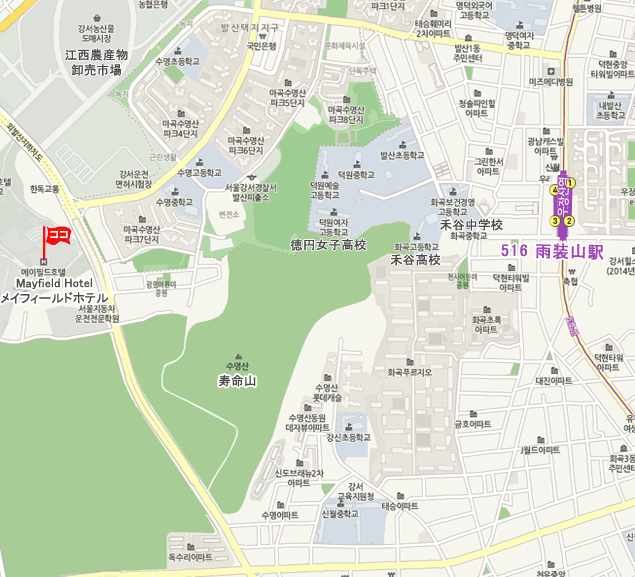 6014番(光明駅行き)一般リムジンバスに乗車し、江西免許試験場(カンソミョノシホムジャン)下車後、徒歩1分