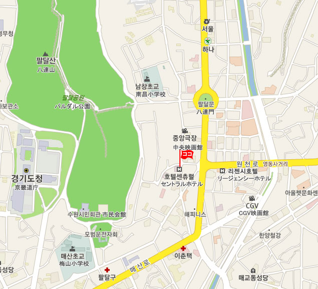 • 地下鉄1号線水原(スウォン)駅(No.P154 Suwon)から 徒歩 約10分。