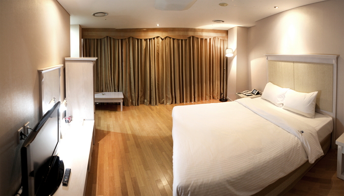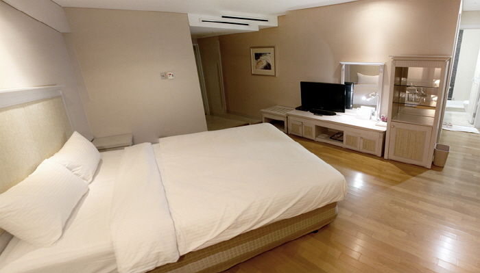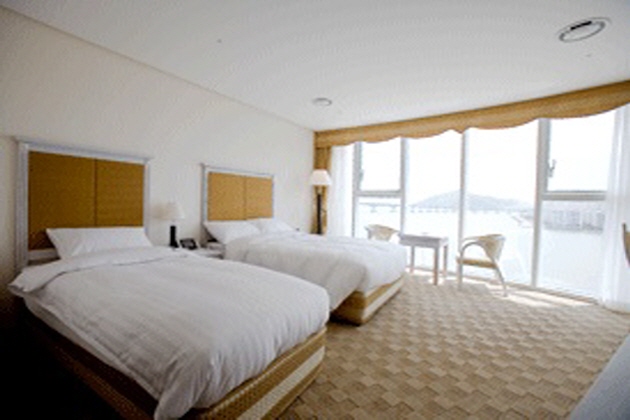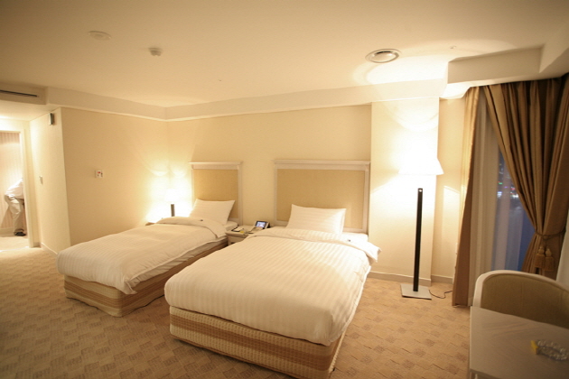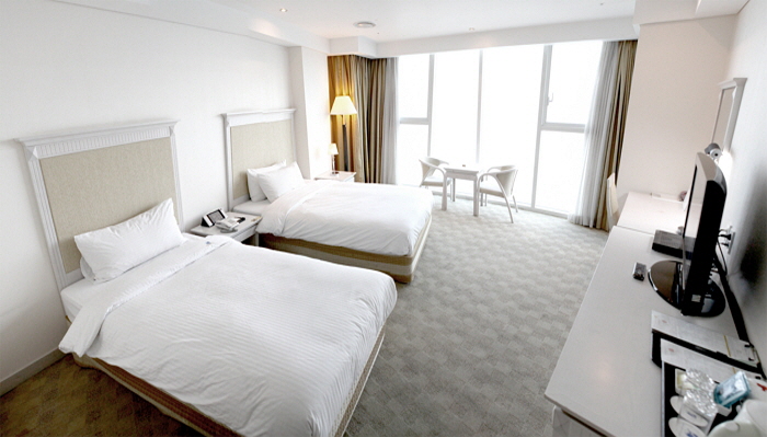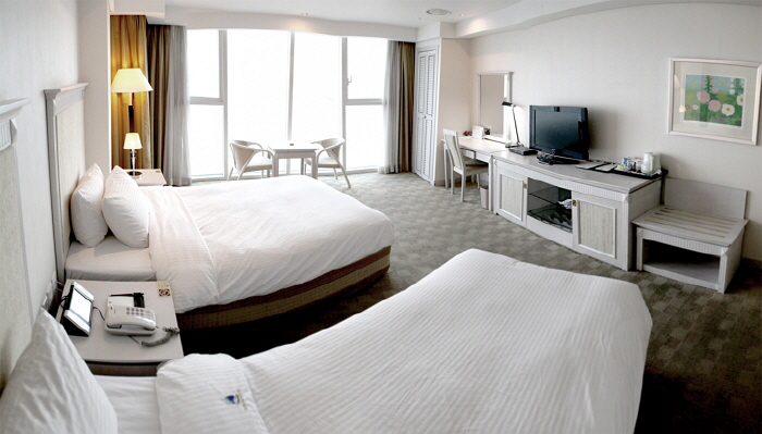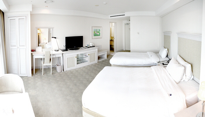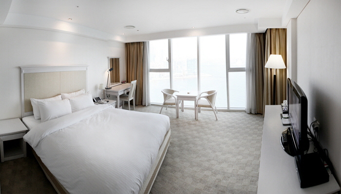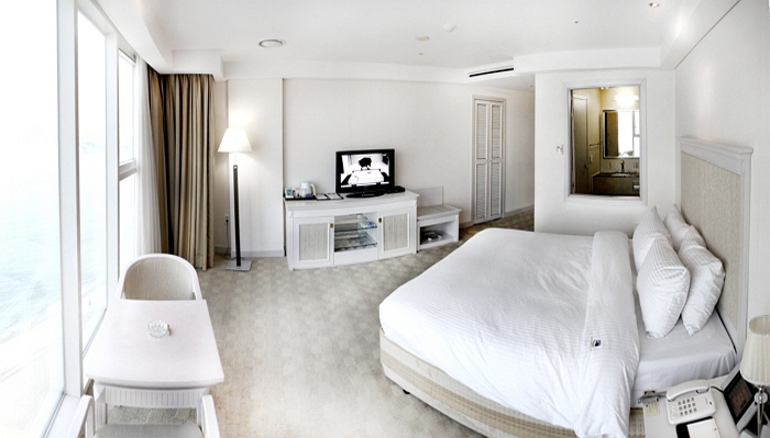 客室はオンドルダブル(オンドル床にダブルベッドが設置されたタイプ)とダブルの一部を除き、サイド(側面)または全面のオーシャンビューで大きく取られた窓から釜山の雄大な海をお楽しみ頂けます。スタンダードタイプも12坪と広く、インテリアはシンプルですが使いやすい客室となります。付帯施設はウォーターパークの他、ロビーラウンジ、レストラン、スカイラウンジ、カラオケ、イベントホール、ゴルフ練習場、フィットネス、ビジネスセンター、理容室、お子様用プレイランドと充実し、屋上には展望台も揃っています。