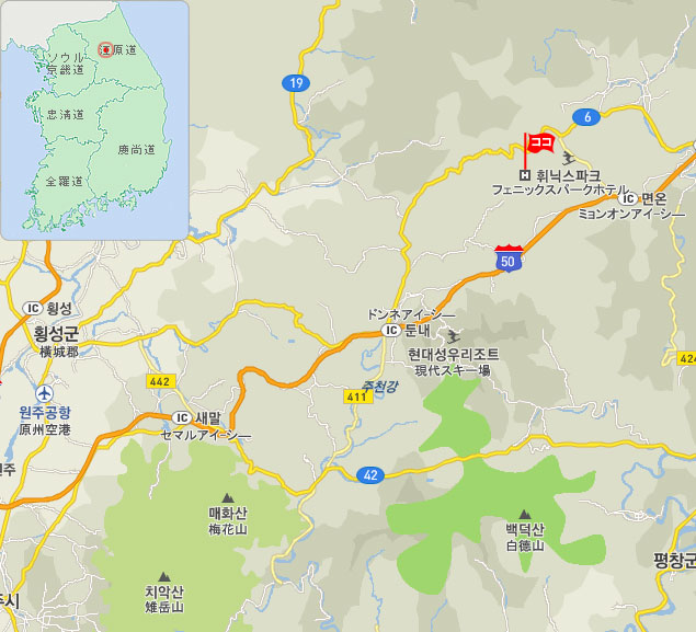 ここ数年、韓国でもスキーやボードを楽しむ人たちが格段と増え、ゲレンデやボード専用コースを持つスキーリゾートも多くなってきました。そんな中で、長い歴史と充実した施設を持つリゾートの代表格が、このフェニックスパークホテルです。ホテルは141室ですが、コンドミニアムが756室、ユースホステルが76室と宿泊施設も大規模ですし、ゲレンデもスロープ13、リフト10と初級者から上級者まで満足できる施設が整っています。ソウルと東海岸を結ぶヨンドン高速道路沿いにありますので、アクセスも便利です。韓国を代表するゲレンデで、韓国のウインタースポーツを楽しんでみませんか?