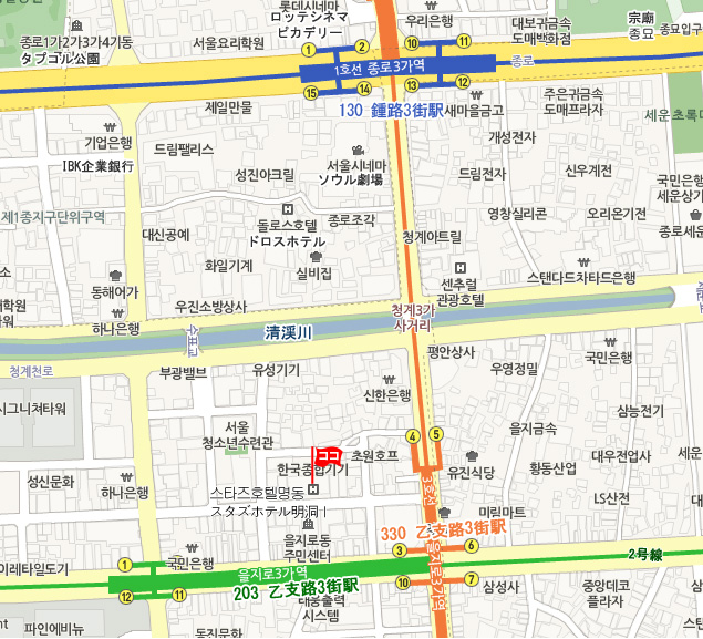 住所 ソウル市 中区(チュング) 乙支路3街(ウルチロサムガ) 95-7