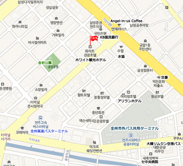 全州高速バスターミナルからホテルま徒歩約10分所要。