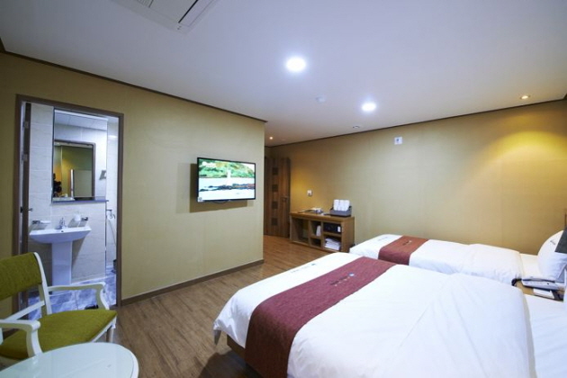 ホテルはリノベーション工事が完了した2013年にリニューアルオープンし、客室は清潔で広さに余裕があり、ビジネスからファミリー旅行まで対応できる客室が揃っています。また、客室はオンドル床となりますので、夏は涼しく、冬は暖かく快適にお過ごしいただけます。全客室WI-FIが利用可能で、ロビーに設置されたPCも無料で利用できます。付帯施設はフィットネスセンターや各種レストランが揃い、10階の屋上庭園からは釜山の夜景もお楽しみいただけます。