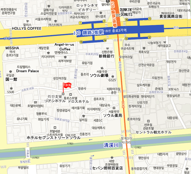♣ 仁川空港 ⇒ ホテル アクセス • 一般リムジンバス : バス乗場:《第1T》5B 《第2T》30 運行間隔:15分 所要時間:72分 バス番号6002番(清涼里行き)に乗り、鍾路3街(チョンノサムガ)で下車。徒歩約3分。 • タクシー : 一般45,400ウォン、模範90,000ウォン程度 所要時間 : 約69分 ♣ 金浦空港 ⇒ ホテル アクセス • 地下鉄 : 金浦空港 (Gimpo Intl Airport)から地下鉄5号線に乗車し、鍾路3街(Jongro (sam)-ga)駅にて下車。15番出口から徒歩5分。 • 市内バス : バス乗場:4番国際,6番国内 運行間隔:6~13分 所要時間:64分 601番(光化門行き)バスに乗り、鐘路3路(チョンノサムガ)で下車。徒歩約5分。 • タクシー : 一般18,000ウォン程、模範45,000ウォン程、所要時間 : 約38分 ♣ その他 情報 • チェックイン 14:00、 チェックアウト 11:00 • NHKなど衛星放送 受信可。 • Wi-Fi(全客室有、無料、パスワード無)、有線LAN接続(全客室有、無料)※LANケーブルはフロントにて貸出 • 徒歩 2分以内にコンビニあります。 • NHKなど衛星放送 受信可。 • 現地の事情により予告なしに変更される場合もございます。あらかじめご了承ください。 • 予約の確認、変更依頼、取消はMy予約確認ページにて行えます。 • メール送受信状況の確認、お客様とハナビツアーとのメッセージのやりとりはMy予約確認ページ ⇒ メール送受信 にて行えます。 • 最終更新日 : 2018. 8. 18