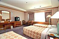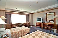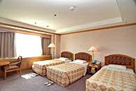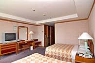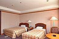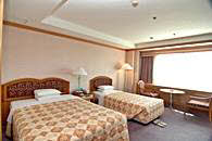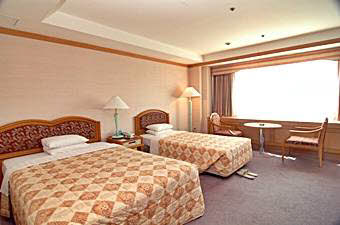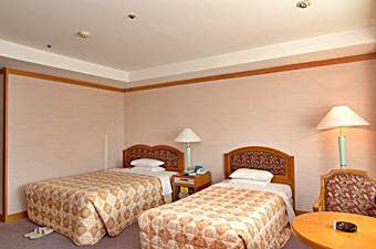 客室総数270室で、客室タイプはスタンダート(ツイン・オンドル・トリプル)と特室ツインの4タイプになっています。ホテルは地下1階、地上8階建ての建物で、3階から8階までが客室フロアーです。2階には宴会場とビュッフェレストラン、1階にフロントとコーヒーショップがあります。また、地下1階には売店とカラオケボックスがあります。温泉サウナは別館の建物。2階が男性用、1階が女性用になっています。営業時間は朝6時から夜の11時までですので、夕食後もゆっくり入れますので、ご利用ください。