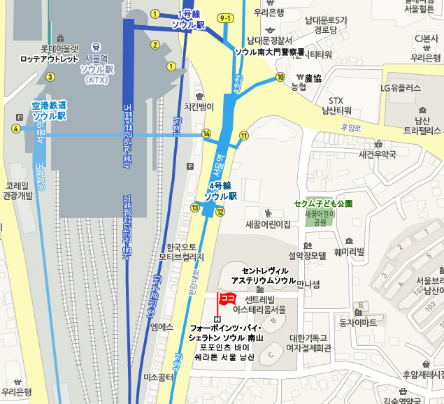 • タクシー : 20,000ウォン程、所要時間 : 約40分