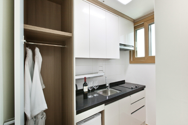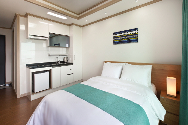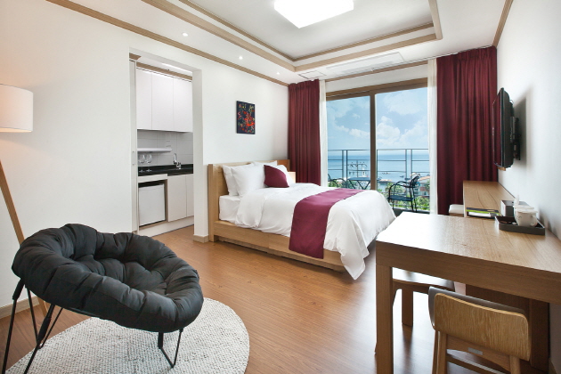 客室タイプは簡単なキッチンがついたワンルームタイプのスタンダードダブルとスタンダードダブル、本格的なキッチンが付いたデラックスダブルの3タイプ。スタンダードダブルは3名まで、デラックスダブルは4名まで利用が可能となります。バスタブはデラックスダブルのみとなり、スタンダードタイプはシャワーブースのみとなります。朝食(アメリカンブレックファスト)は1室あたり2名まで無料で提供されます。客室内はwi-fiも無料で利用できメールや旅行情報のチェックにも問題ありません。ホテルがある大浦洞(デポドン)は中文リゾートとはまた違ったのんびりとした穏やかな雰囲気を持ちます。ファミリアホテル済州でゆったりとした時間をお過ごしください。