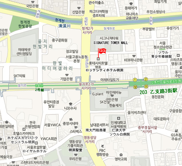 ♣ 仁川空港 ⇒ ホテル アクセス • 一般リムジンバス : バス乗場:5B 12A 6015番(明洞,東大門方面)バスに乗り、乙支路2街前下車後、徒歩約3分 • 地下鉄 : 空港鉄道A`REXに乗車し弘大入口駅にて地下鉄2号線に乗り換え、乙支路3街駅(Euljiro3(sam)-ga)にて下車。1番出口より徒歩約3分 • タクシー : 50,000ウォン程 所要時間 : 70分 ♣ 金浦空港 ⇒ ホテル アクセス • 地下鉄 :空港鉄道A`REXに乗車し弘大入口駅にて地下鉄2号線に乗り換え、乙支路3街駅(Euljiro3(sam)-ga)にて下車。1番出口より徒歩約3分 • 一般リムジンバス : バス乗場:国際6番 国内4番 6021番(明洞,東大門方面)バスに乗り、乙支路2街前下車後、徒歩約3分 • タクシー : 20,000ウォン程 所要時間 : 約40分 ♣ その他 情報 • チェックイン 14:00、 チェックアウト 12:00 • 徒歩 2分以内にコンビニあります。 • NHKなど衛星放送 受信可。 • 現地の事情により予告なしに変更される場合もございます。あらかじめご了承ください。 • 予約の確認、変更依頼、取消はMy予約確認ページにて行えます。 • メール送受信状況の確認、お客様とハナビツアーとのメッセージのやりとりはMy予約確認ページ ⇒ メール送受信 にて行えます。 • 最終更新日 : 2018. 01. 11