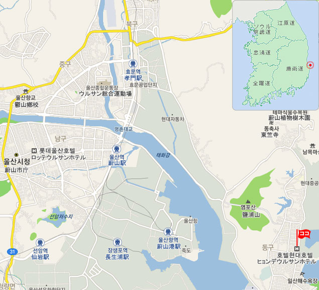 • 蔚山(ウルサン)駅:タクシーで 約20分。