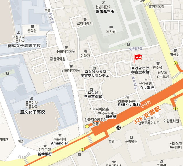 No.328安国(Anguk)駅で下車、1番出口から徒歩約5分。