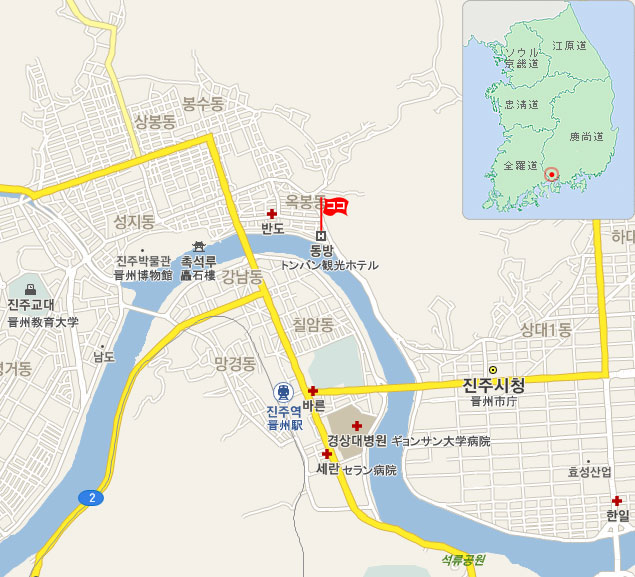 • 晋州(チンジュ)市外バスターミナル:からホテルまで 徒歩 約2分。