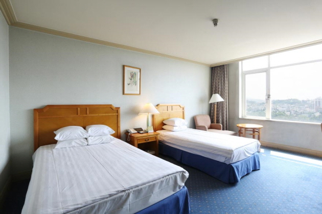 ホテルの入口を入ると天井の高い開放的なロビーがあります。このロビーに足を踏み入れたとたん、ホテルの心のこもったサービスが、お客様をお待ちしています。9階建ての建物の3階から9階までが、167室の客室部分。伝統村側の客室からは、伝統家屋の瓦屋根が並んでいる風景を見ることができます。2階には、男女サウナやスポーツマッサージ、フィットネスクラブなどがあり、フロントデスクのある1階には、コーヒーショップ、ビジネスセンターなどがあるなど、施設も整っています。