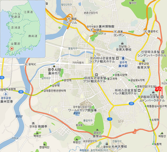 住所 光州広域市(クァンジュクァンヨクシ)東区(トング)芝山洞( ジサンドン)山63-1