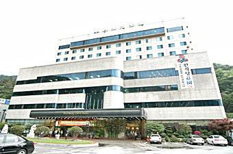 10階建てのホテル建物の5階から9階までが客室になっています。客室は、スタンダード(ダブル、ツイン、オンドル)、デラックス(ツイン、オンドル)、そしてロイヤルスイートに分かれています。最上階の10階には、ビュッフェレストランがありますので、韓国料理を中心に世界の料理が楽しめます。4階はフィットネスクラブ、宴会場、3階は男性用サウナとボーリング場、2階は女性用サウナとレストランになっています。1階にはコーヒーショップとウェディングホールがあります。ホテルの敷地内には、テニス場、散策路など様々な施設があるのも魅力です。一度、ご利用されては、いかがですか?