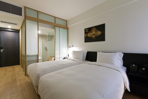 430室を誇る客室はビジネスユースからファミリーまで様々なニーズに対応できる多様なタイプが揃い、日本人には嬉しいヒノキのバスタブ付の客室も用意されています。シンプルながら調和の取れたインテリアでまとめられた客室の広さはどのタイプも7.5坪と繁華街にある他のホテルに比べ広く、ゆっくりとお休み頂けます。全ての客室でWi-Fiを無料(パスワードはフロントで確認)で利用できネット環境も良く、ウォシュレットも完備されています。フィットネスセンターやビジネスセンター、屋上のルーフトップバー、イベントホール、レストランなど付帯施設も充実しています。