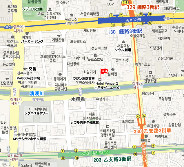 ♣ 仁川空港 ⇒ ホテル アクセス • 一般リムジンバス : バス乗場:《第1T》5B 《第2T》30 運行間隔:15分 所要時間:72分 バス番号6002番(清涼里行き)に乗り、鍾路3街(チョンノサムガ)で下車。徒歩約5分。 • 地下鉄 : 空港鉄道に乗車し孔徳駅で地下鉄5号線に乗換え鍾路3街駅(Jongno3ga)で下車後、14番出口より徒歩約5分 • タクシー : 一般47,000ウォン程度 ♣ 金浦空港 ⇒ ホテル アクセス • 地下鉄 : 空港鉄道に乗車し孔徳駅で地下鉄5号線に乗換え鍾路3街駅(Jongno3ga)で下車後、14番出口より徒歩約5分 • タクシー : 一般19,000ウォン程度 ♣ その他 情報 • チェックイン 15:00、 チェックアウト 12:00 • NHKなど衛星放送 受信可。 • 現地の事情により予告なしに変更される場合もございます。あらかじめご了承ください。 • 予約の確認、変更依頼、取消はMy予約確認ページにて行えます。 • メール送受信状況の確認、お客様とハナビツアーとのメッセージのやりとりはMy予約確認ページ ⇒ メール送受信 にて行えます。 • 最終更新日 : 2018. 10. 18