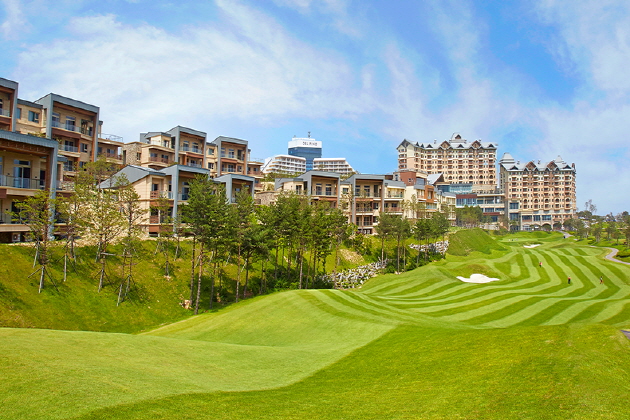 ソウルから車で約3時間の距離にある江原道・高城(コソン)は朝鮮半島を分断する軍事境界線の最東部に位置し、日本海に面した雄大な海や深い山々に恵まれた自然豊かなエリアです。大明(テミョン)リゾートデルピノは四季を通じて快適に利用できる総合リゾート型宿泊施設で、ゴルフ場、ウォーターパーク、サウナ、スパ、娯楽場、レストラン、ダイニング、カフェなど様々な付帯施設が揃っています。館のの設備やサービスはもちろん、客室からの山々の眺めも好評で国内でも人気の高いリゾートとして知られています。